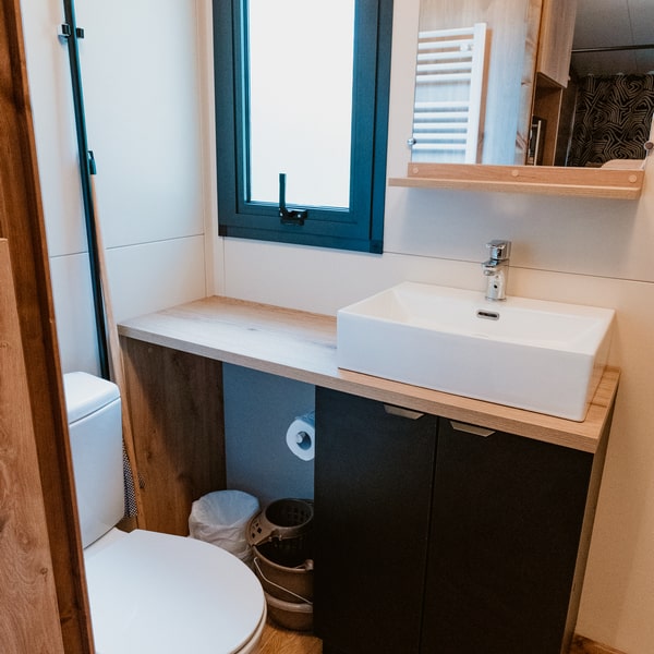 Pas de salle de bain, utilisation des sanitaires du camping.