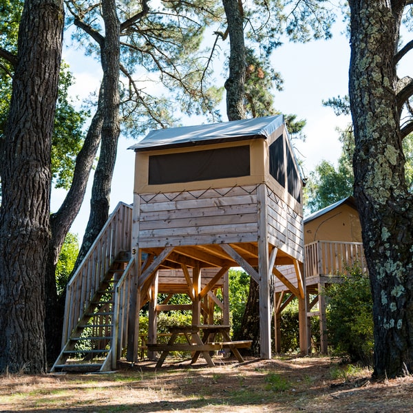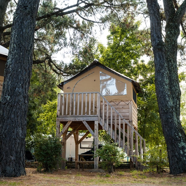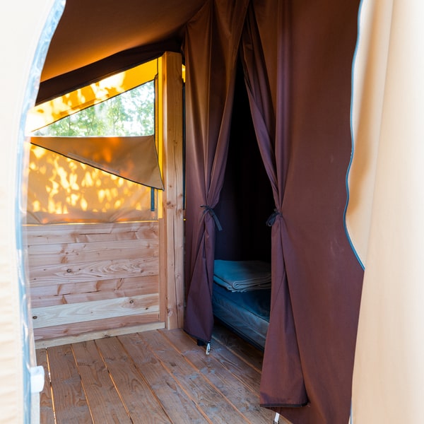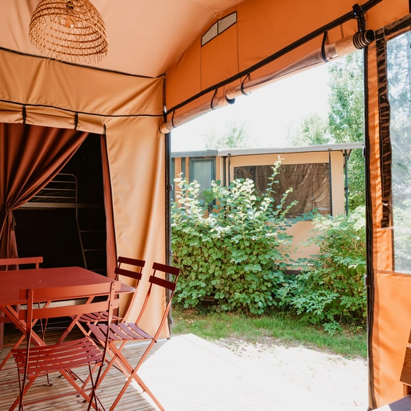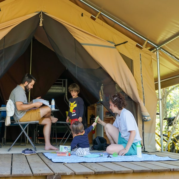 Si vous recherchiez le confort d’un hébergement prêt-à-louer sans rogner sur l’authenticité du camping, notre tente Lonna est faite pour vous : un véritable cocon en toile et bois construit sur pilotis, idéal pour les séjours-étapes à vélo. Toute aménagée, vous n’avez plus qu’à vous installer et vous reposer après une journée à vadrouiller ou pédaler !