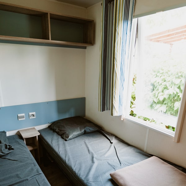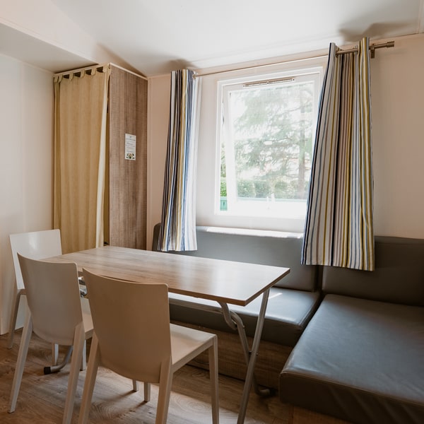 Dans le même esprit familial que le mobil-home 6 personnes, cet hébergement peut accueillir 2 personnes supplémentaires grâce à son sofa convertible : idéal pour profiter d’une étape en groupe ! Sa terrasse couverte et son salon de jardin avec chaises longues seront parfaits pour profiter des belles journées d’été.