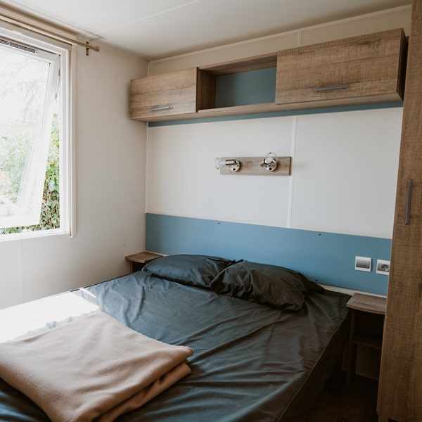 Idéal pour les familles en escale à Clisson ! Ce mobil-home bien pensé et adapté pour les personnes à mobilité réduite vous propose une touche cosy mêlée à la convivialité du camping. 2 chambres douillettes, un salon lumineux et une terrasse couverte (avec rampe d’accès) pour apprécier la vue sur l’extérieur en toutes saisons.
